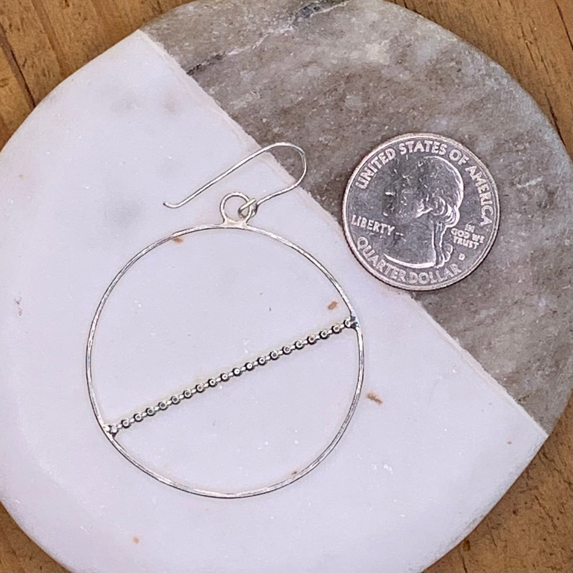 Handmade .925 sterling silver lightweight dangle hoop earrings. Handmade ear wire with clear rubber bullet clutch earring safety back.