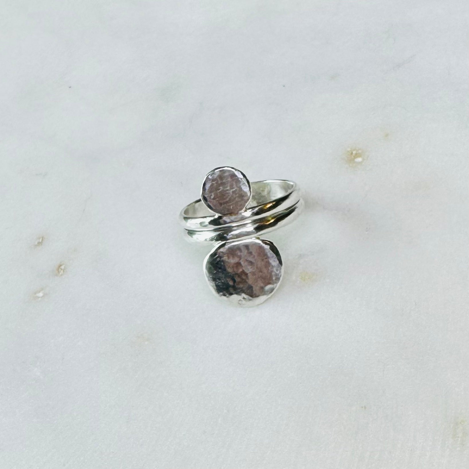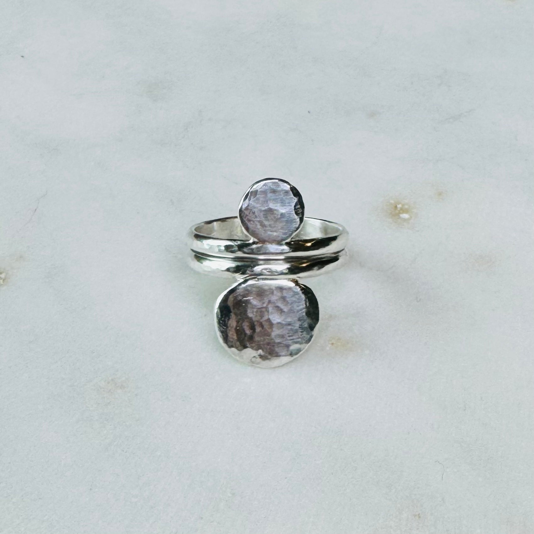 The Stacked Diani rings are made out of .925 sterling silver recycled scraps melted down and hand formed into disk shape.