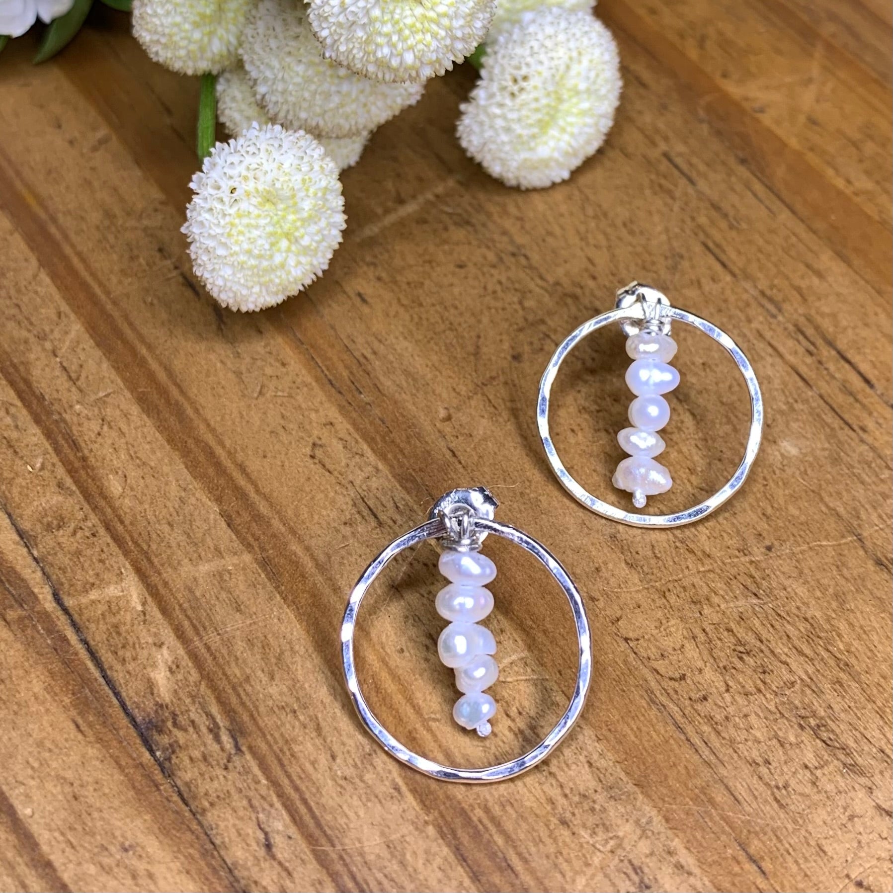 Handmade .925 sterling silver lightweight post hoops with fresh water pearls. Sterling silver posts.