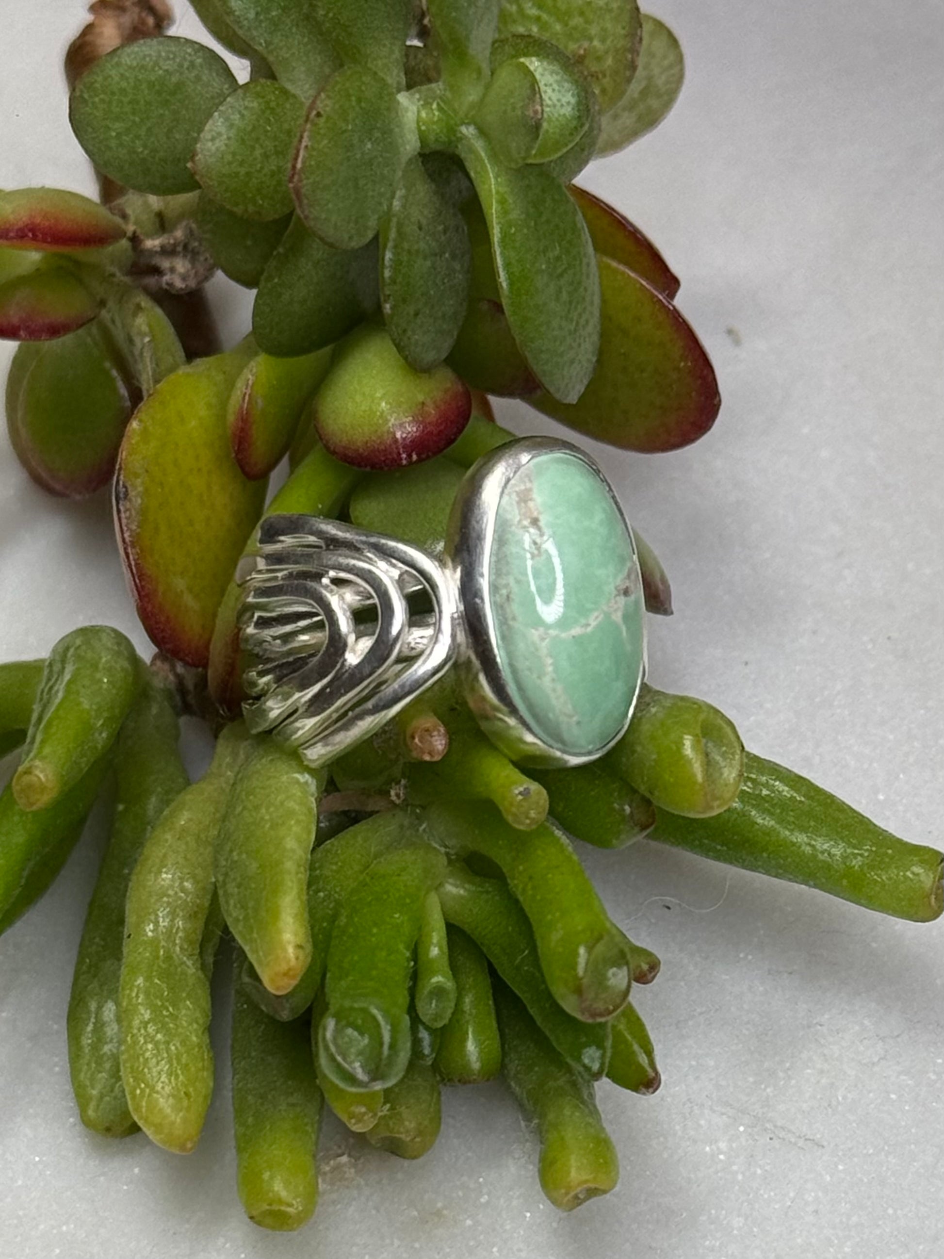 The Verascite Papakolea Ring is made out of .925 sterling silver with a beautiful verascite semi-precious stone. Verascite is known for its healing properties, including pain relief, improved circulation and cognitive enhancement.
