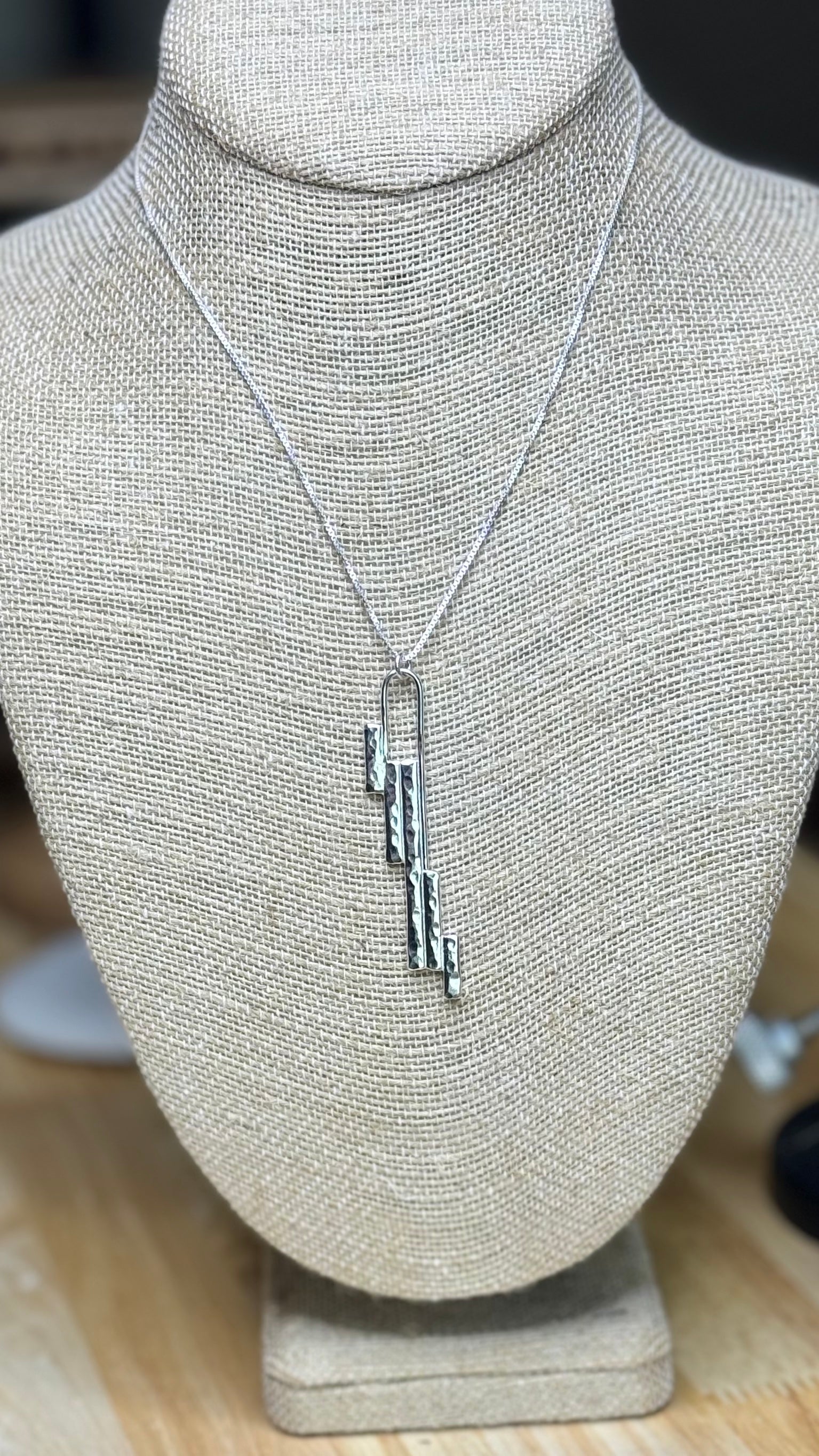 Handmade .925 sterling silver Bowie necklace with sterling silver box chain.